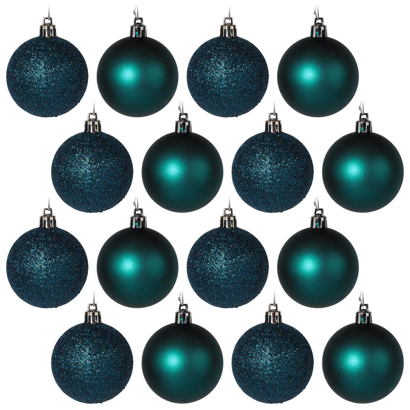 Kingfisher Deep Teal Blue Christmas Tree Baubles Decorations - Set of 16