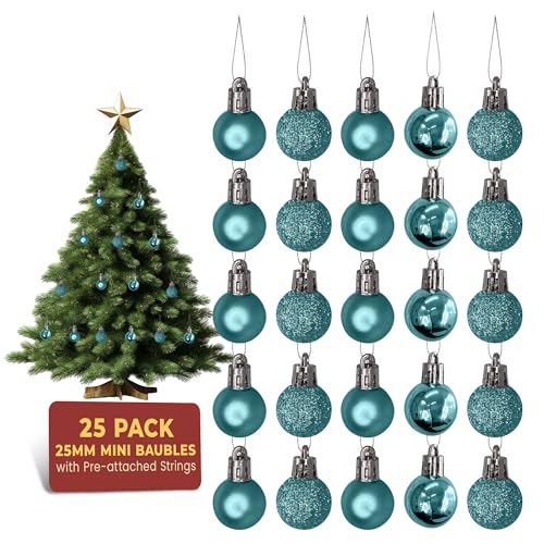 Festive Fix 25 Ice Blue Mini Shatterproof Christmas Baubles - Shiny, Matte & Glitter Hanging Ornament, Lightweight, Durable Xmas Decorations for Christmas Trees, Home, Party & Festive Events