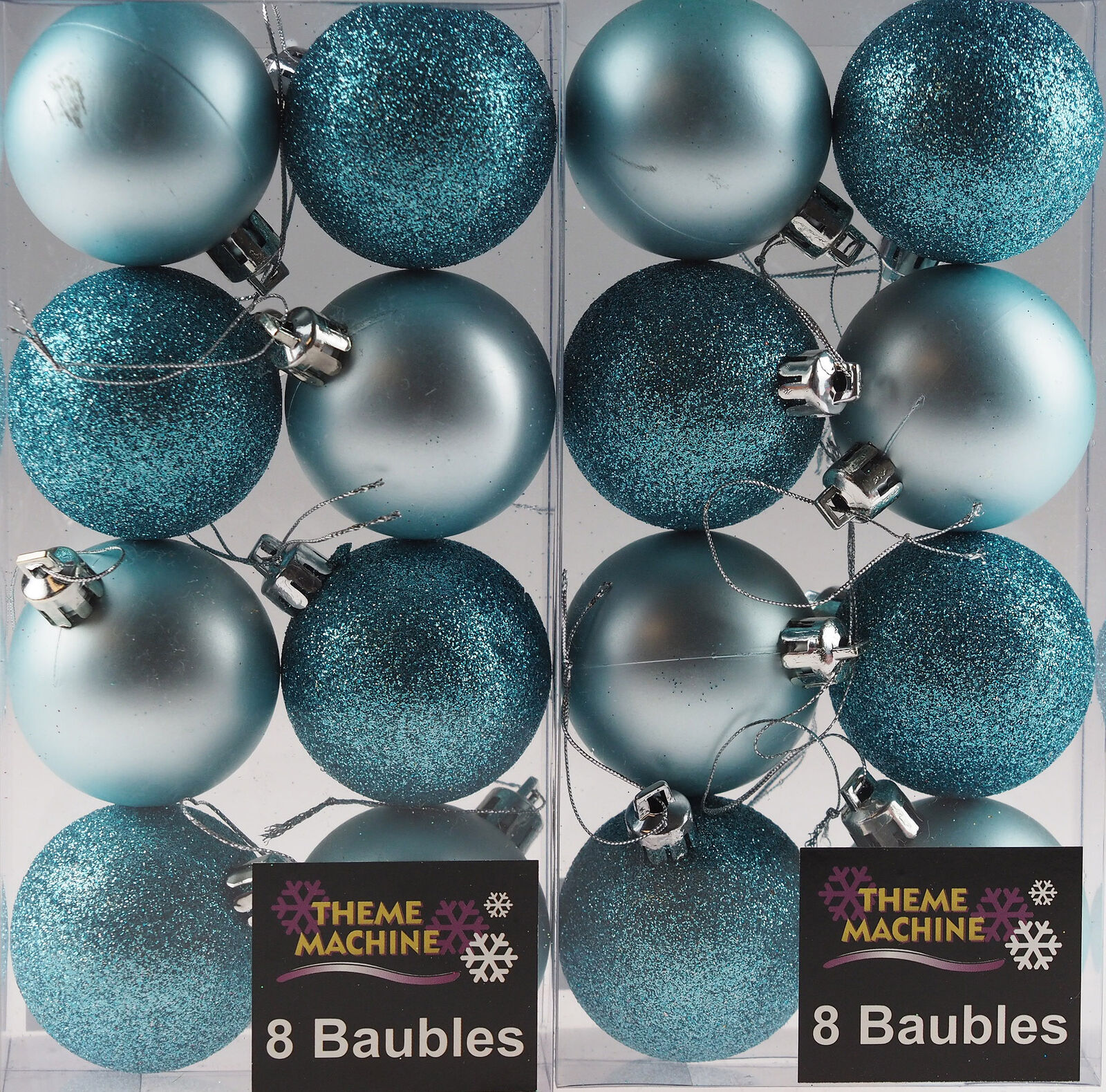 18 Teal Blue Christmas Baubles Shatterproof Matte Shiny 5cm - Festive Decor Set