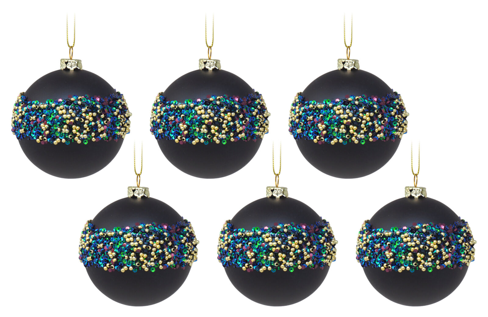 Opulent Navy Blue Christmas Baubles / Ornaments With Beaded Band - Set of 6
