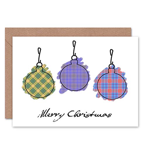 Wee Blue Coo CARD CHRISTMAS XMAS MERRY TREE BAUBLES TARTAN GIFT