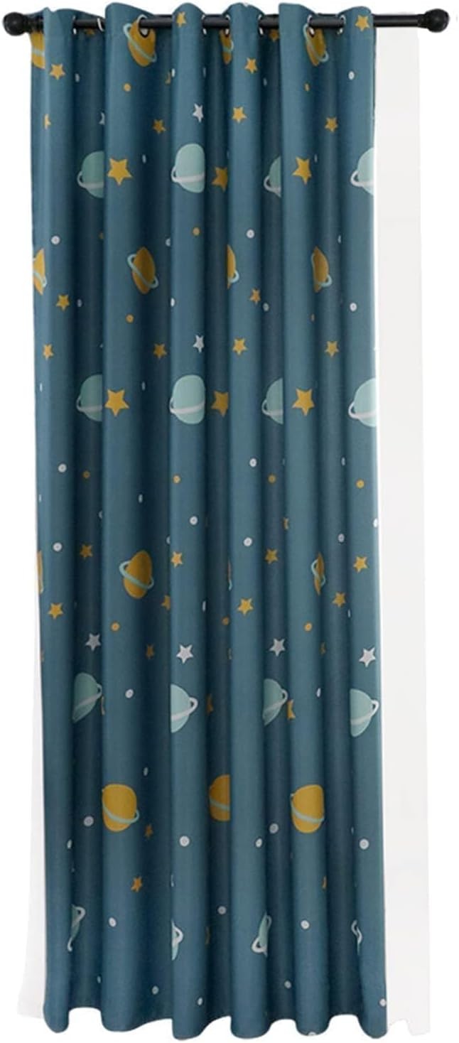 HERCHR Polyester Blackout Curtains, Cartoon Blue Planets Bedroom Curtains Livin
