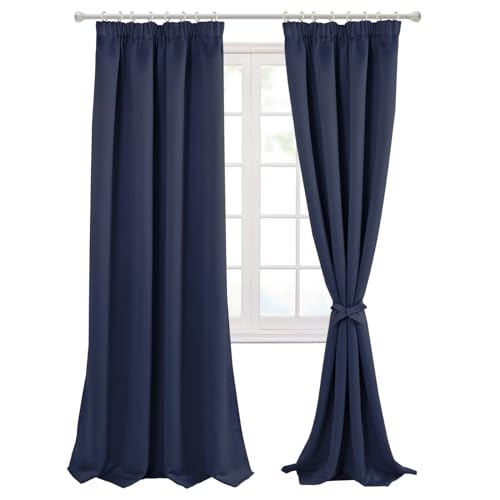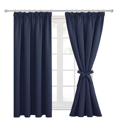 Hiasan Navy Blue Curtains for Bedroom pencil pleat blackout Curtains Living Room Curtain with Tiebacks Thermal Curtains 46 x 54 Inch 2 Panels