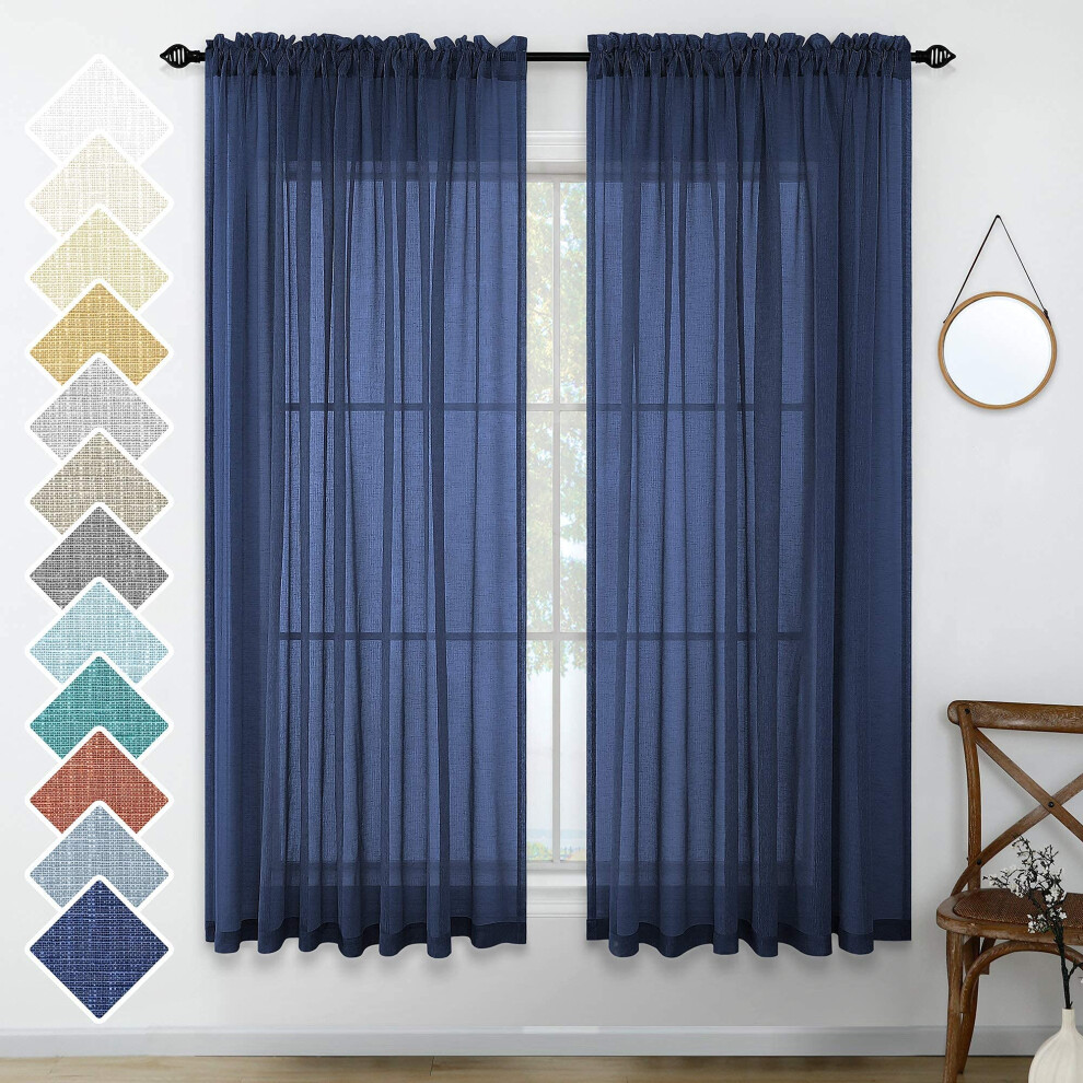 Navy Blue curtains 63 Inches Long for Kitchen 2 Panels Set Rod Pocket Light Reducing Linen Look Nautical Indigo Blue Sheer curtains for Bedroom Boys R