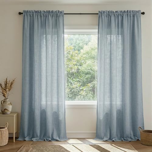 Grey Blue Curtains 84 Inch Length for Living Room 2 Panel Sets Rod Pocket Light Filtering Semi Sheer Linen Blend Country Blue Farmhouse Curtains for Bedroom Dining Dusty Blue Gray Drapes 52x84 Long