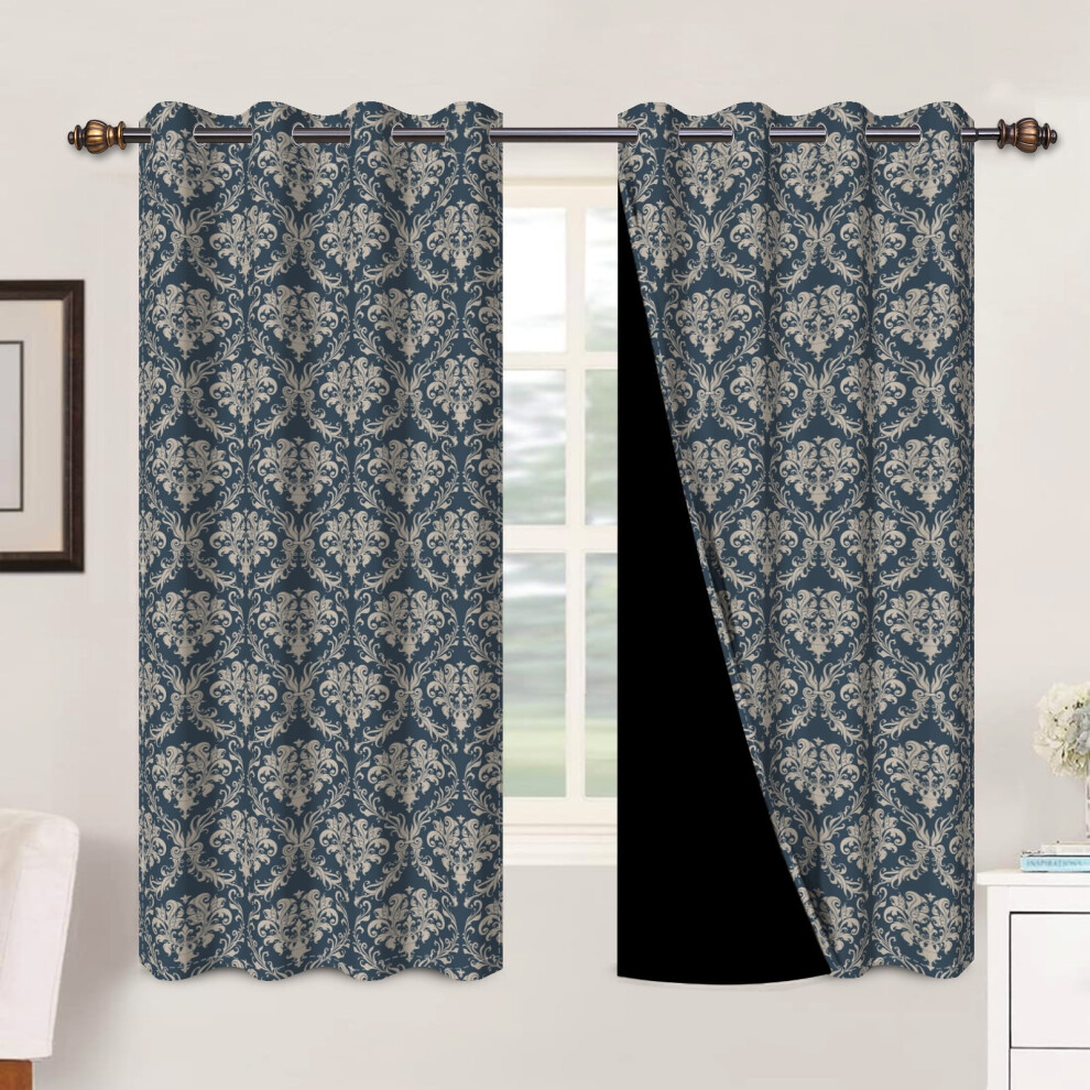 KGORGE Curtains 84 inch Length - Blue Blackout Curtains for Bedroom Grommet Top Damask Geometry Window Decoration for Kitchen Living Room, Blue Grotto, W 52 x L 84 inches, 1 Pair