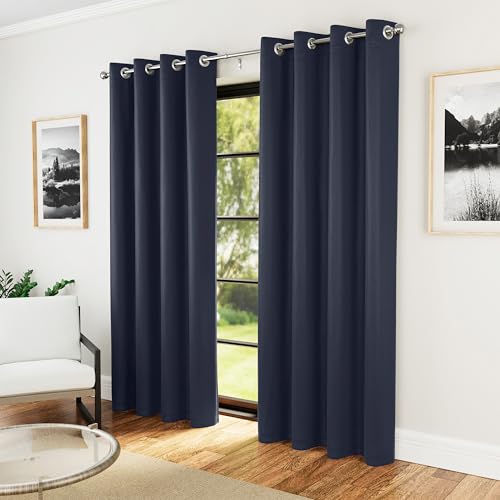 Enhanced Living Nightfall Eyelet Blackout Curtains - Thermal Navy Blue Curtains for Bedroom - 46x72 inch (117x183 cm) - 230gsm, Supersoft, Energy Saving & Noise Reducing - 2 x Curtain Panels