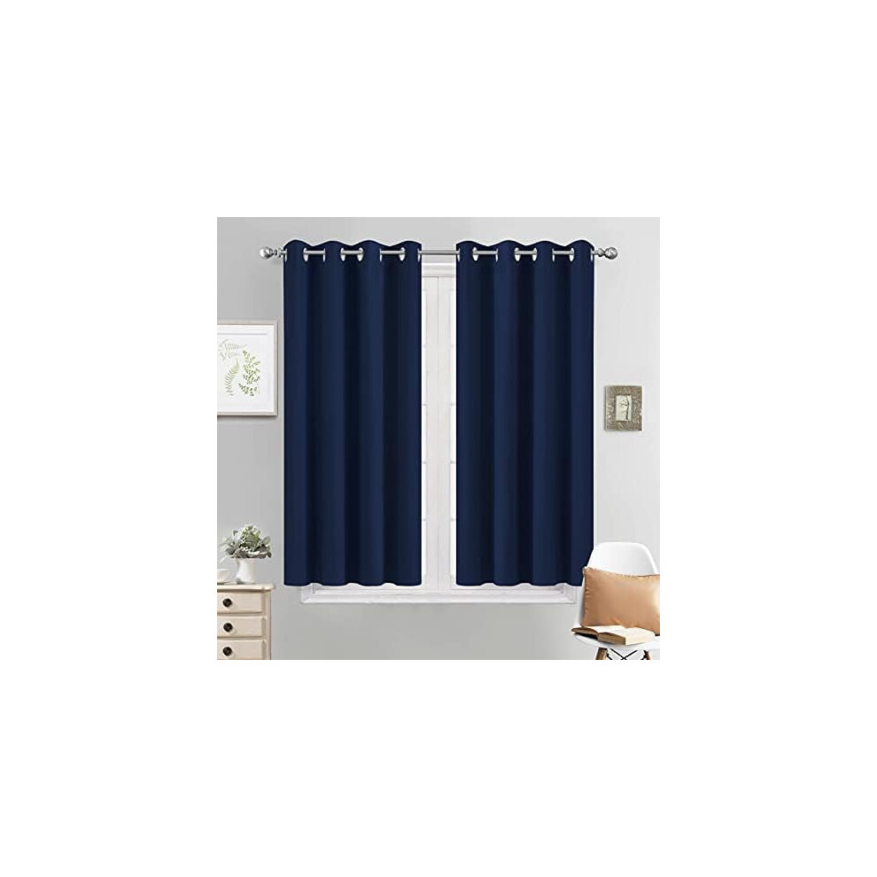 Navy Blue Blackout Curtains for Bedroom, Light Blocking Window Treatment Drapes - Plain Solid Grommet Top Curtains(52Wx45L, 2 Panels)