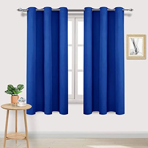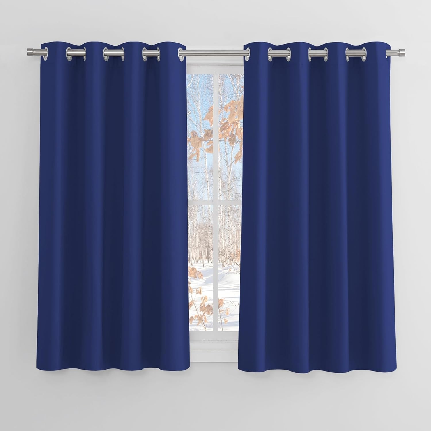 PONY DANCE Blue Curtains for Bedroom Thermal Blackout Eyelet Curtains Short Bla