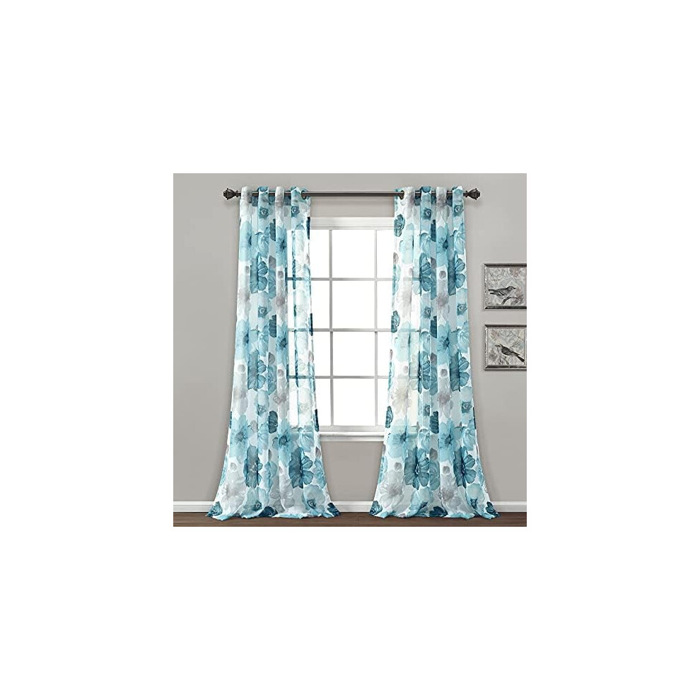 Leah Floral Sheer Window Curtain Panels Pair 52"W x 84"L Blue - Floral Curtains for Bedroom - Sheer Curtains for Living Room