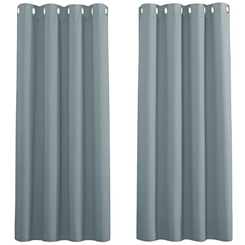 PONY DANCE Eyelet Greyish Blue Curtains - 2 Panels Bedroom Window Curtain Light Filter Vintage Home Decor Solid Draperies Sun Blocking, Energy Saving, Wide 46 Inch by Drop 72 Inch