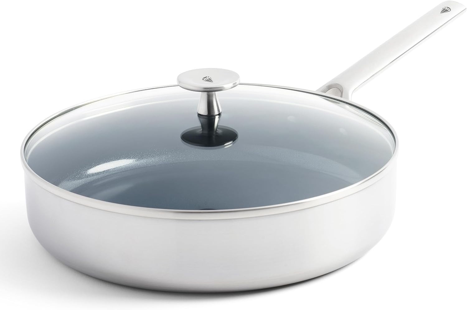 Blue Diamond Cookware Triple Steel Stainless Steel Diamond Reinforced Ceramic Nonstick 16 cm/1.2 Litre Chef Sauté Pan with Lid, Tri-ply, PFAS-Free, Multi Clad, Induction, Oven Safe, Silver