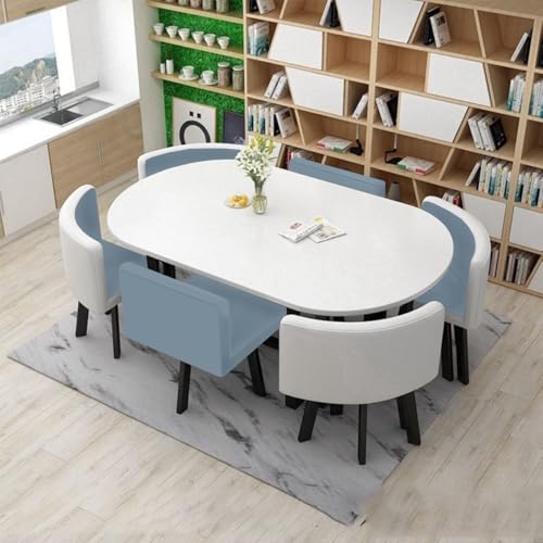 YKWLKJ Oval Reception Dinner Table Set for 6, 7-Piece Space Saving Kitchen Table and 6 Chairs with Metal Legs(Gray-blue)