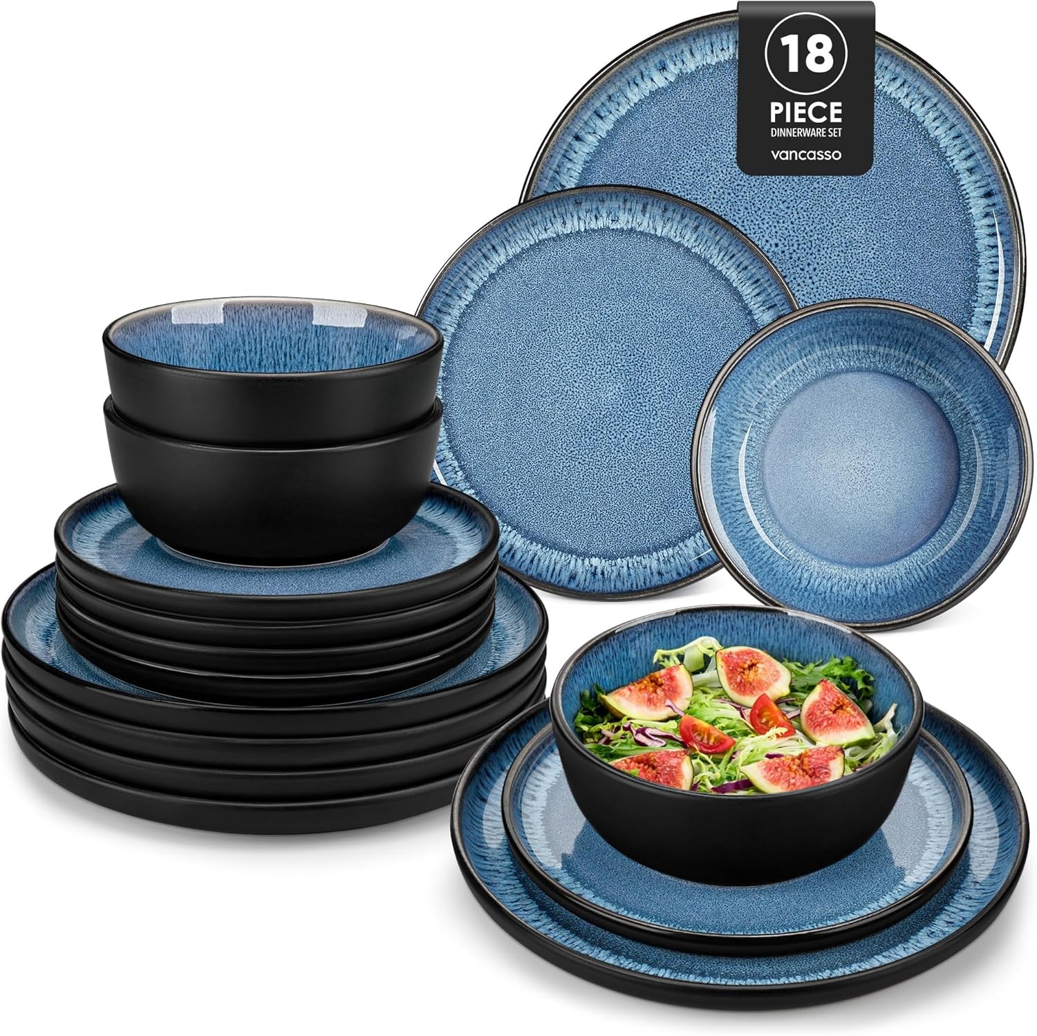 vancasso Playa Blue Dinner Set, Reactive Glaze Dinner Sets for 6 People, 18-Pie