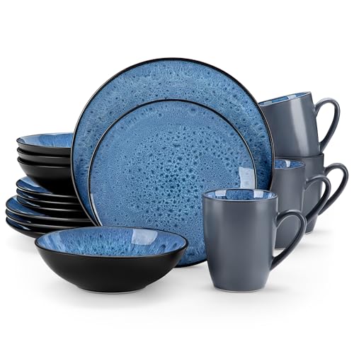 vancasso Bubble Blue Dinner Set, Reactive Glaze Dinnerware Tableware, 16-Piece Dinner Service with 11in Plate, 8in Dessert Plate, 7in Bowl and 380ml Mug, Service for 4