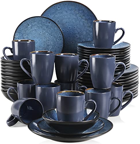 vancasso Bubble Blue Dinner Set, Reactive Glaze Dinnerware Tableware, 48-Piece Dinner Service with 11in Dinner Plate, 8in Dessert Plate, 7in Bowl and 380ml Mug, Service for 12