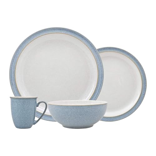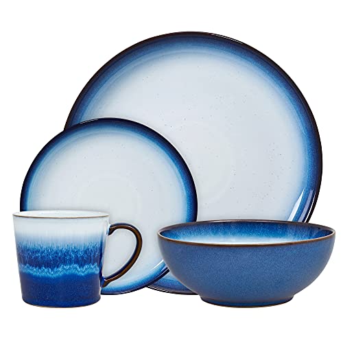 Denby - Blue Haze Dinner Set For 1 - 4 Piece Ceramic Tableware Set - Dishwasher Microwave Safe Crockery Set - 1 x Dinner Plate, 1 x Small Plate, 1 x Cereal Bowl, 1 x Mug