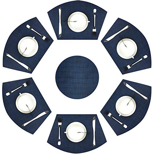 Wedge Placemats,Set of 7 Vinyl Placemats for Round Tables Woven Non-Slip Heat-Resistant Easy to Clean Wipeable Washable Dinner Table Mats(Navy Blue)