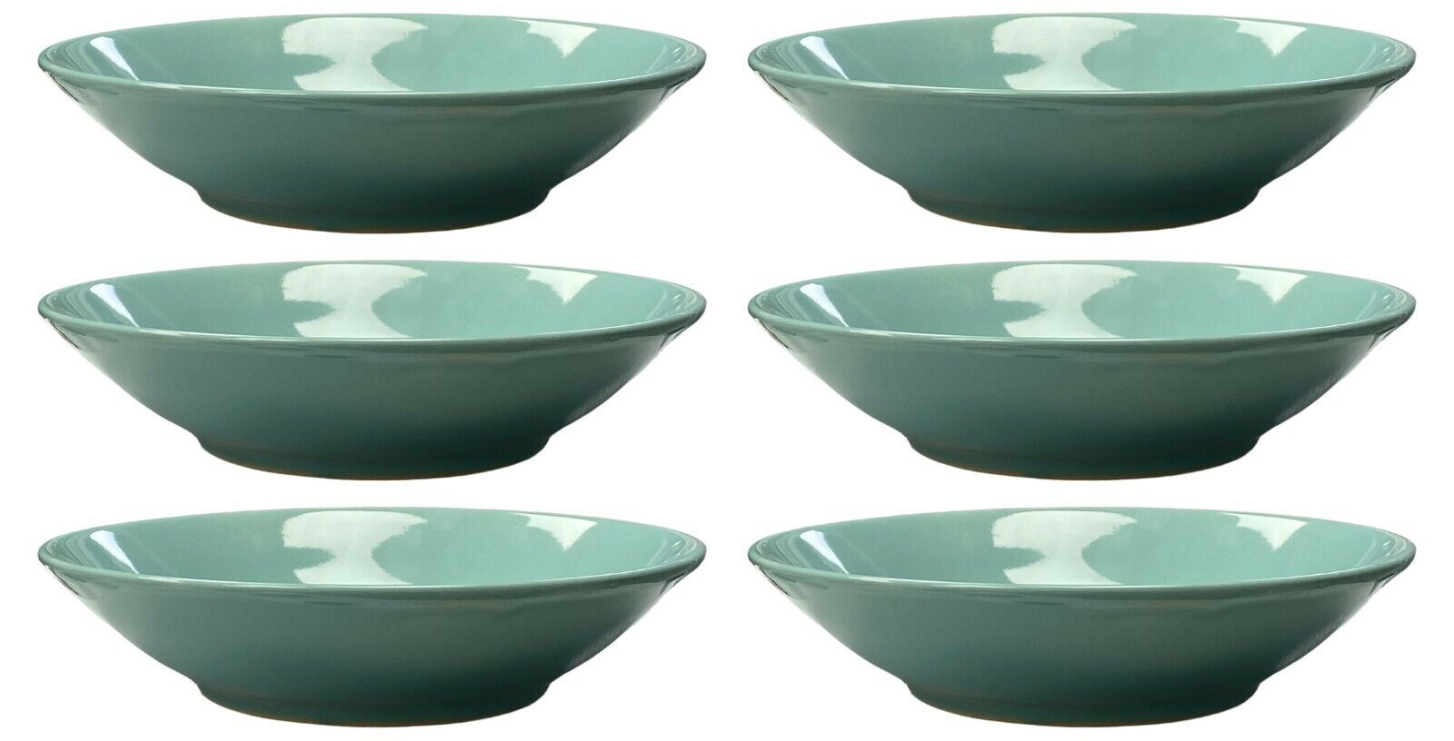 Set of 6 Large 725ml Stoneware Bowls, Duck Egg Blue Reactive Glaze Dinner Set