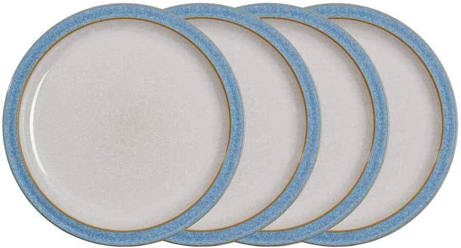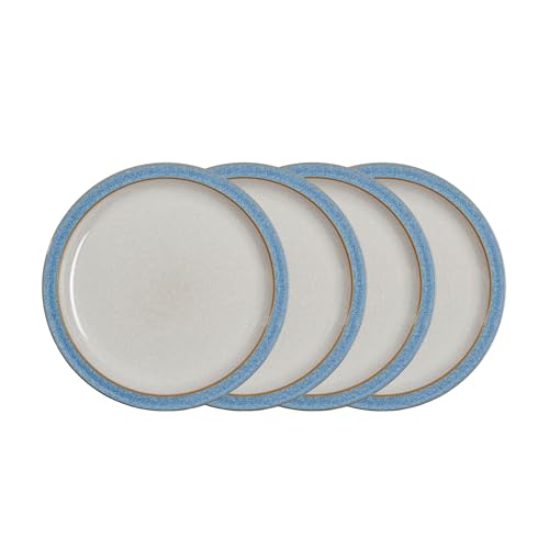 Denby - Elements Blue Dinner Plates Set of 4 - Dishwasher Microwave Safe Crocke