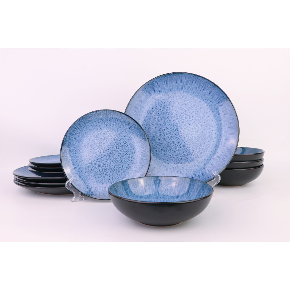 vancasso Starry Blue Dinner Set - Reactive Enamel Dinnerware - 16 Piece Dinner Set with 11" Dinner Plate, 8" Dessert Plate, 7" Bowl and 11oz Mug