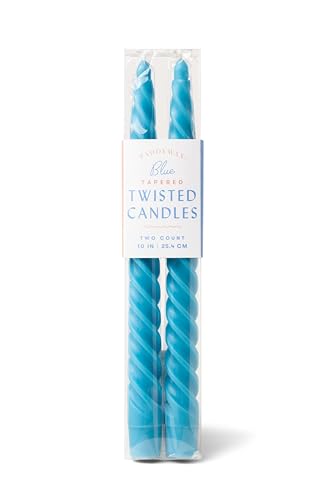 Paddywax Taper Candles Colorful Twisted Tapers Unscented Dinner Candle Set, 2-Pack, Blue