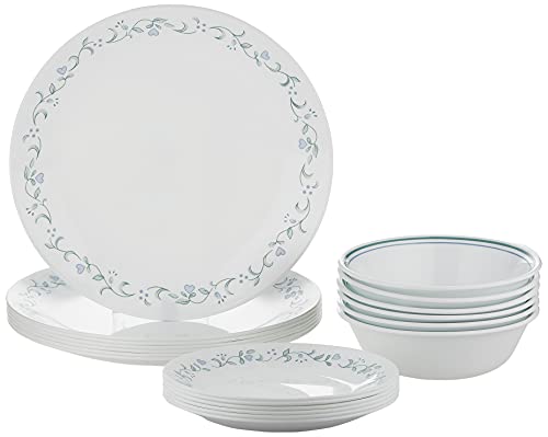 Corelle 18-Piece Dinner Set, Country Cottage, Blue and White Service for 6, Chip Resistant Dinnerware, Includes 26cm Dinner Plates, 17cm Salad/Side Plates and 530ml Soup/Cereal Bowls