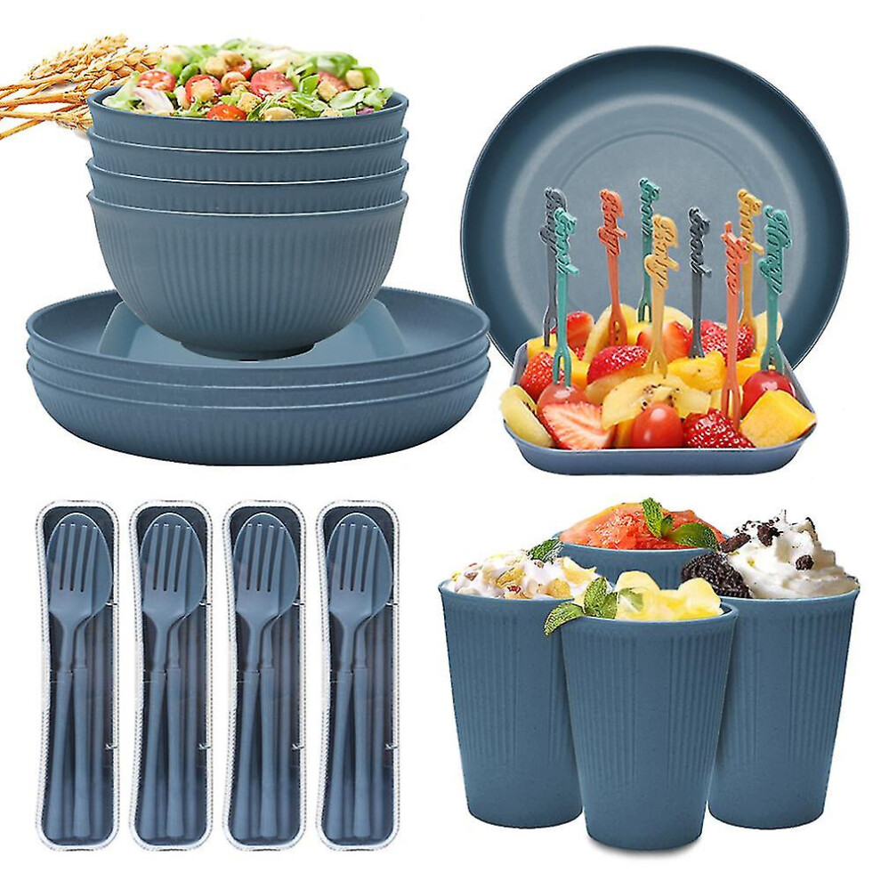 Greentainer Unbreakable Lightweight Dinnerware Sets, Plastic Dinner Set, 4 Dining Plates, 4 Bowls, 4 Cups, Microwave and Dishwasher Safe, Camping Tableware for Kids and Adults, Service for 4(Blue)