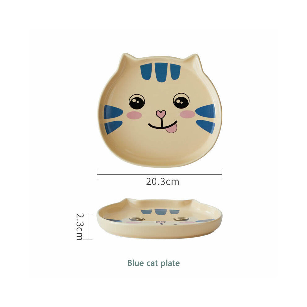 (a-Blue cat plate) Cartoon Cat Dinner Plate Sets Hand Painted Retro Under-glazed Dessert Dishes Steak Ceramic Plates Gifts Home Decoratio