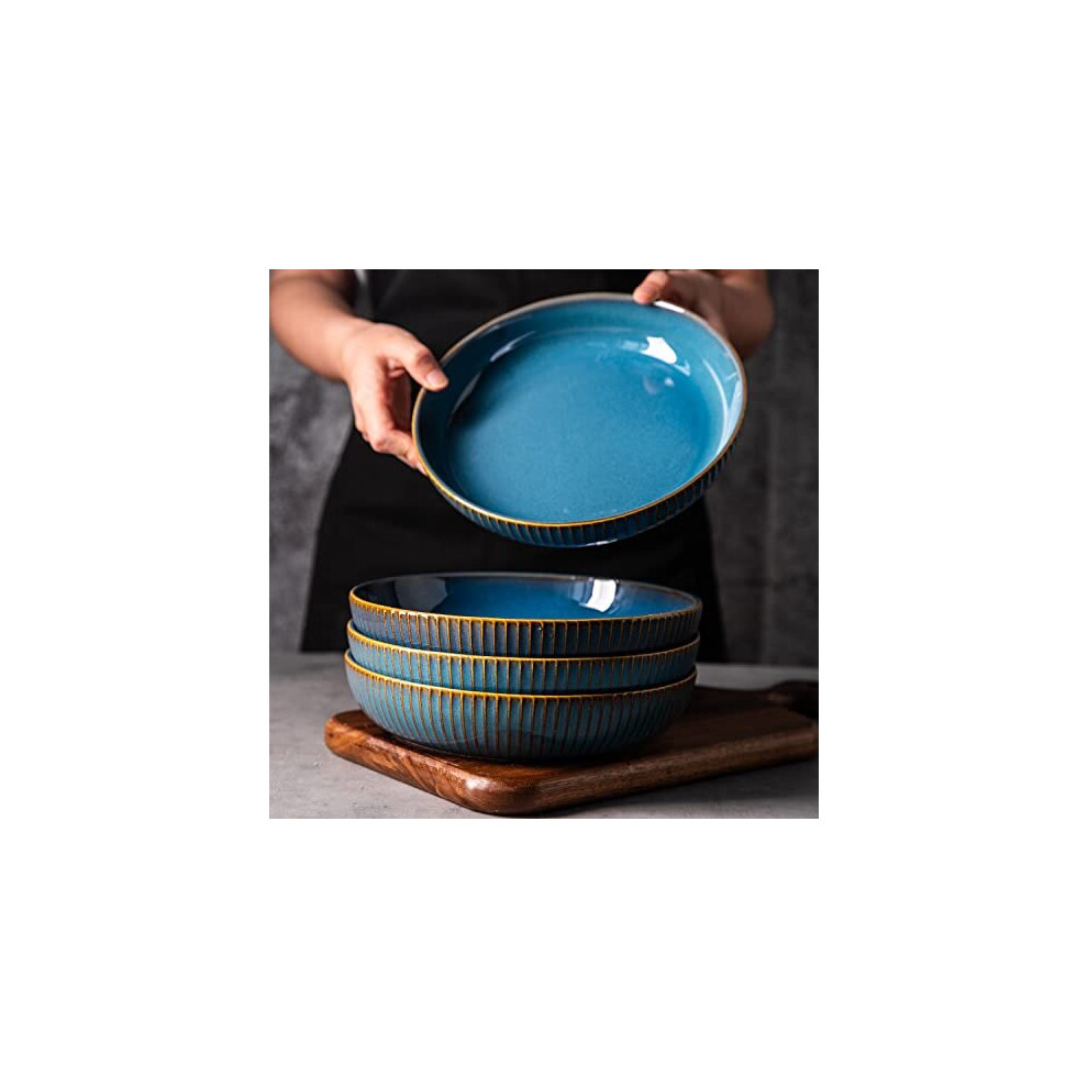 4 Pcs Pasta Bowls, 21cm Ceramic Serving Bowls, Blue Round Premium Porcelain Dinner Bowl Sets, 1000ml Bowls Plates for Pasta, Salad, Soup, Fr