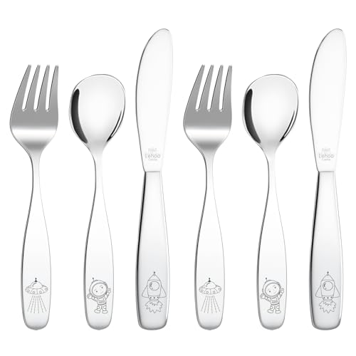 Lehoo Castle Rocket Toddler Kids Cutlery Set, 6 Pcs Stainless Steel Travel Camping Baby Cutlery Sets - 2 x Forks, 2 x Spoons, 2 x Knives, Children's Dinner Knife and Fork Sets