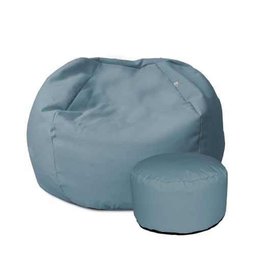 rucomfy Beanbags Large Indoor/Outdoor Bean Bag Chair, Home & Garden Recliner Seat, Durable & Water Resistant 97 x 82 x 80cm (Seafoam Blue, With Footstool)