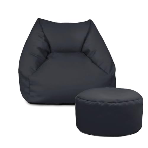 rucomfy Beanbags Small Kids Indoor/Outdoor Bean Bag. Children's Outside Garden Chair. Pre-Filled Water Resistant & Durable. 50cm x 65cm (Navy Blue, With Footstool)