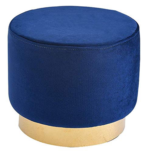 XDAWQP Velvet Round Ottoman Footrest Stool for Living Room Bedroom Small Beige Upholstered Footstool,Blue Small