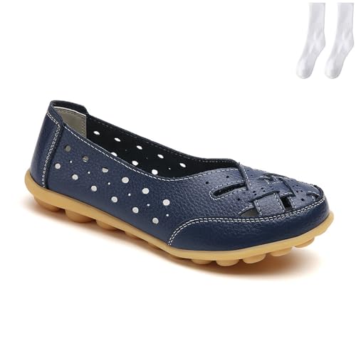 Owlkay Shoes for Women, Owlkay New Casual Women Shoes, Comfortable Cowhide Leather Soft Flats Sandals Cutout Slip-On Loafers (Blue, Adult, Women, 4.5, Numeric, UK Footwear Size System, Medium)