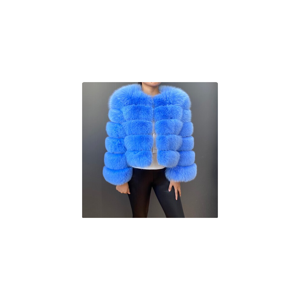(Sky blue, L) 2025 fur coat imitation fox fur splicing winter clothing thickened warm long sleeved short fur coat