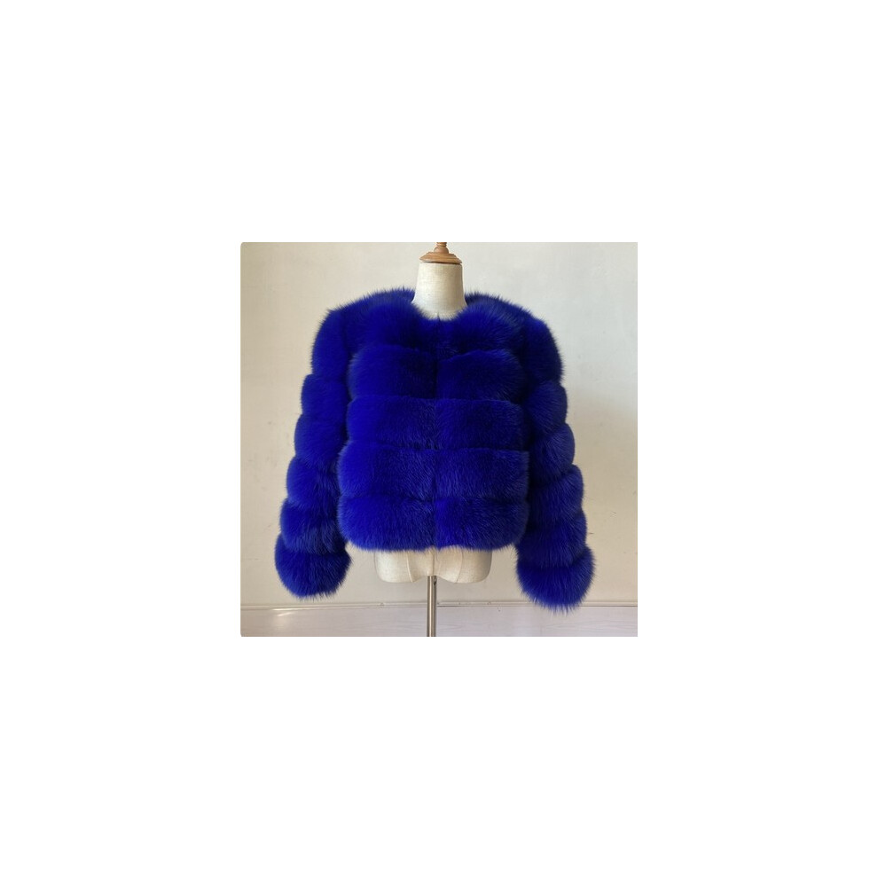 (Royal blue, S) 2025 fur coat imitation fox fur splicing winter clothing thickened warm long sleeved short fur coat