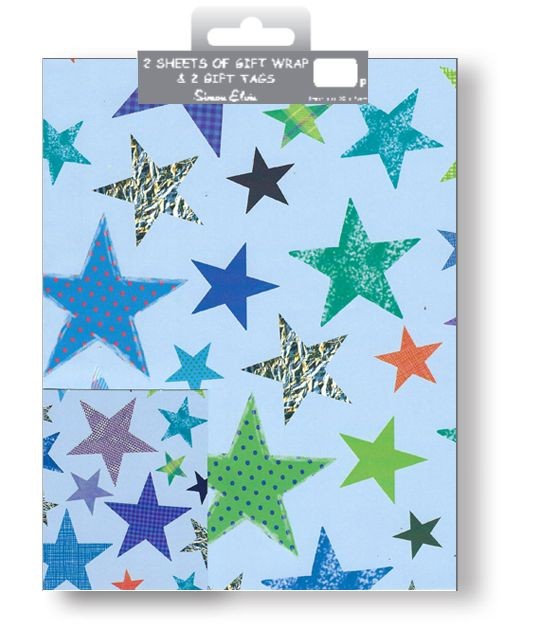 Blue Stars Gift Wrapping Paper 2 Sheet & Tags Men Birthday Fathers Day Quality