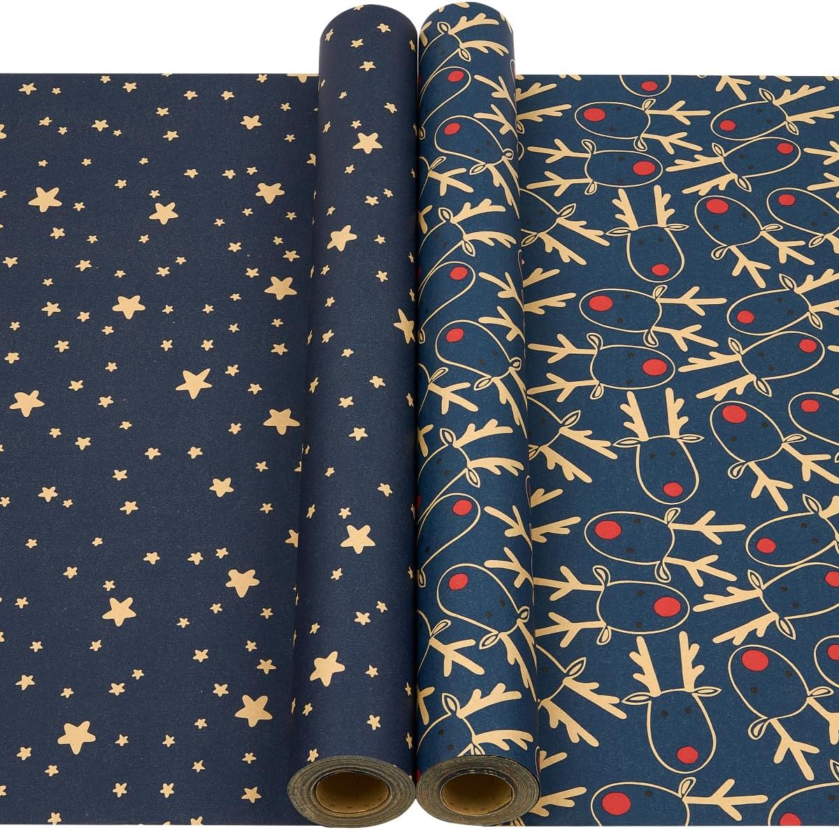 2 Rolls Blue Gift Wrapping Paper, 43CM X 2M Kraft Christmas Wrapping Paper Print
