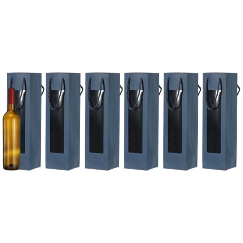 sourcing map 13.7" x 3.7" x 3.5" Wine Gift Bag, 6Pcs Bottle Kraft Paper Wine Bags Gift Tote Carrier Bottle Bag with Handles Bulk for Wedding Party Supplies, Birthday Holiday, Navy Blue