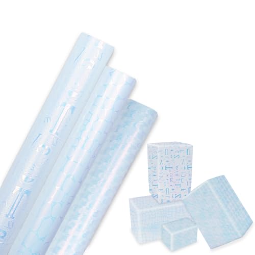 Set of 3 Blue Pearlescent Gift Wrapping Paper 43cm × 3m Gift Wrapping Roll for Baby Boy Gifts, Birthday, Baby Shower, Wedding