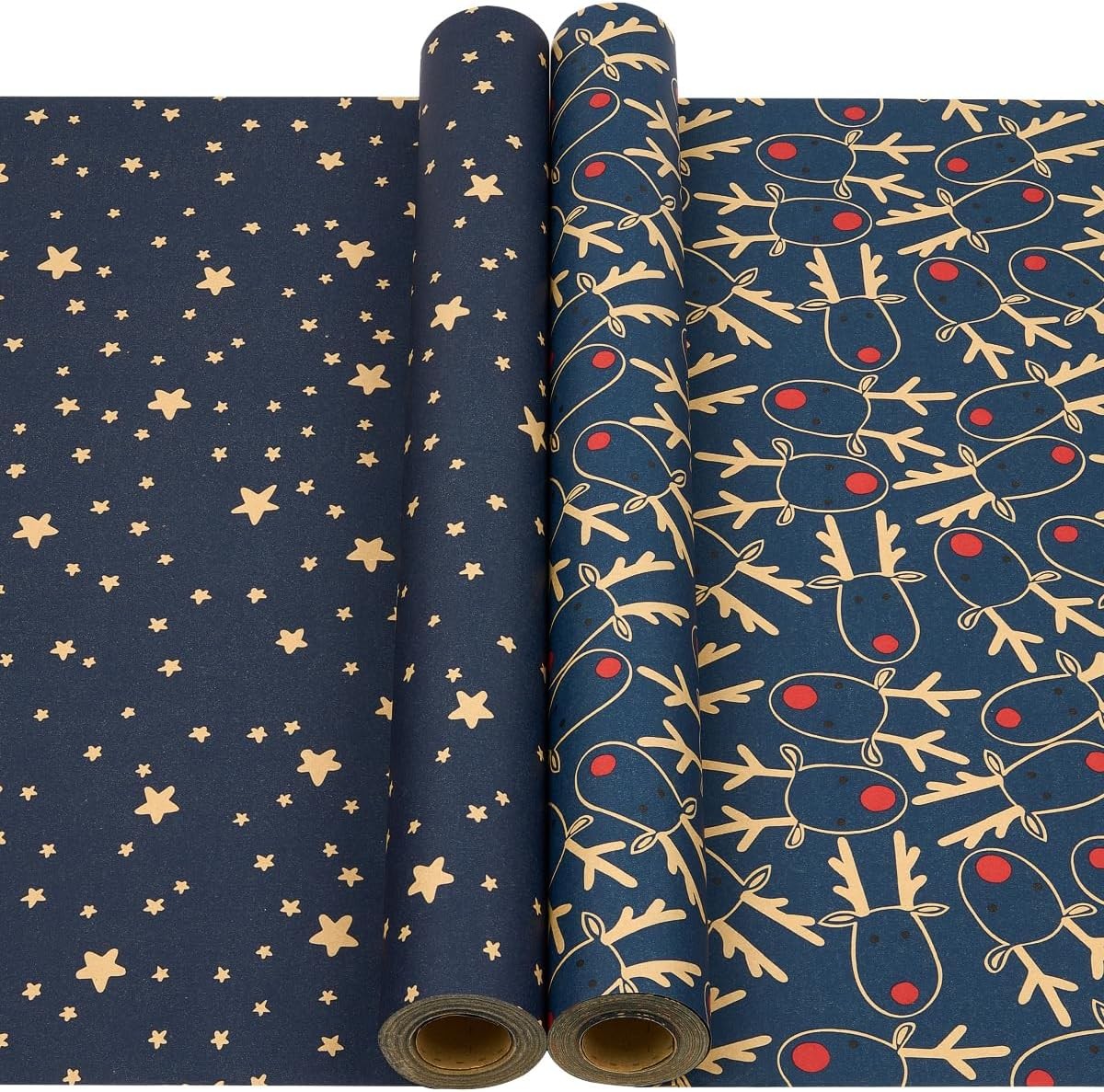 2 Rolls Blue Gift Wrapping Paper, 43CM x 12M Kraft Christmas Wrapping Paper Pri