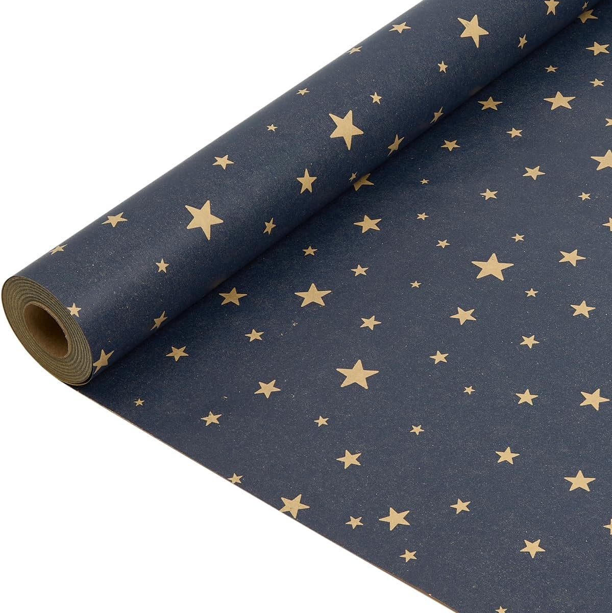 Christmas Wrapping Paper Kraft Paper : Navy Blue Gift Wrapping Paper Star Desig