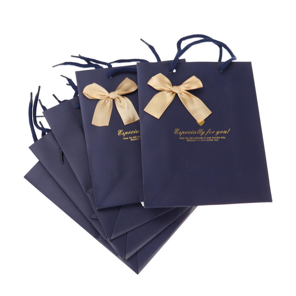 5Pcs Blue Paper Gift Bags Durable Craft Paper Party Shopping Bags