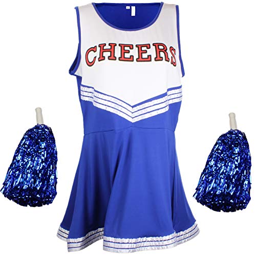 Cheerleader Fancy Dress Outfit Uniform High School Costume With Pom Poms Blue Cheerleader, Large