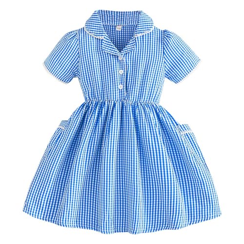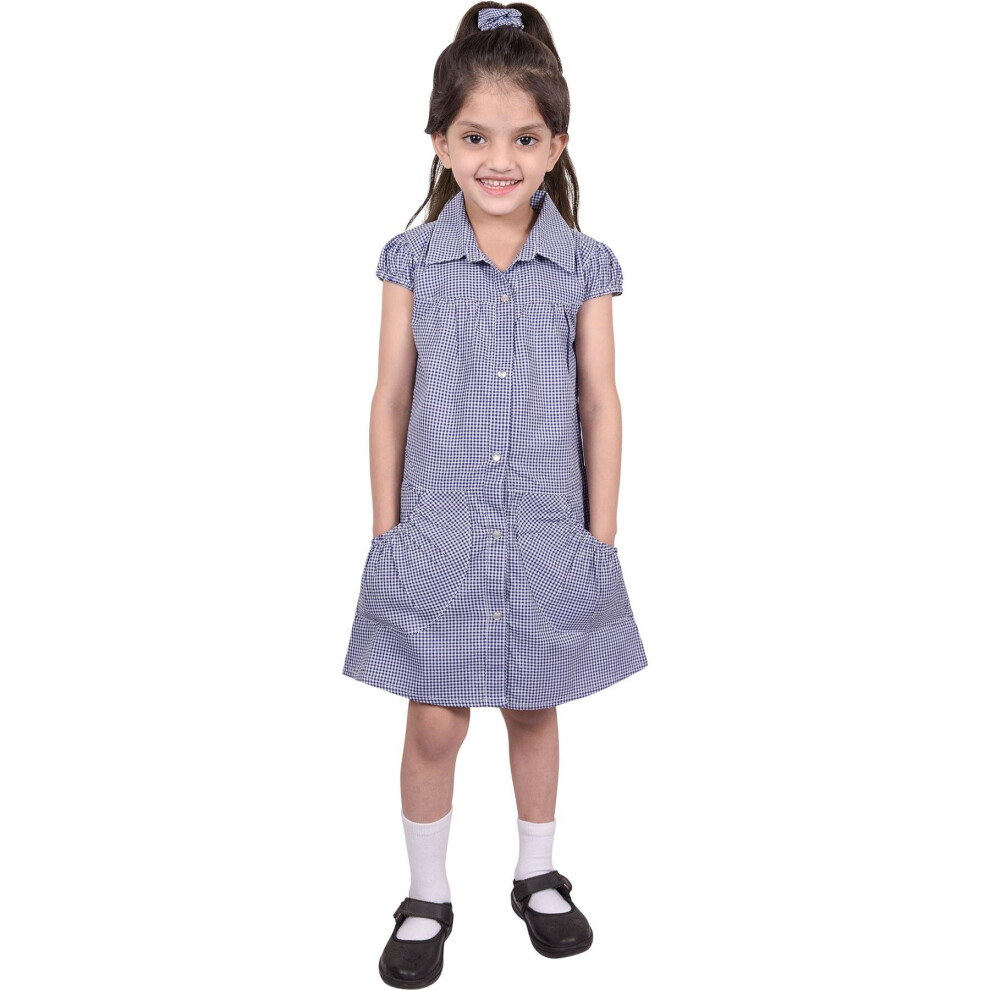 (4-5 Years, Blue) Girls Gingham School Dress Check Printed Dresses