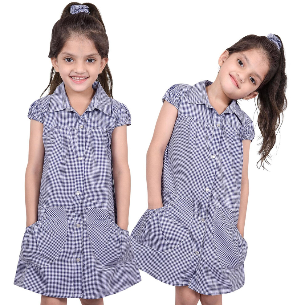 (3-4 Years, Blue) Girls Gingham School Dress Check Printed Dresses