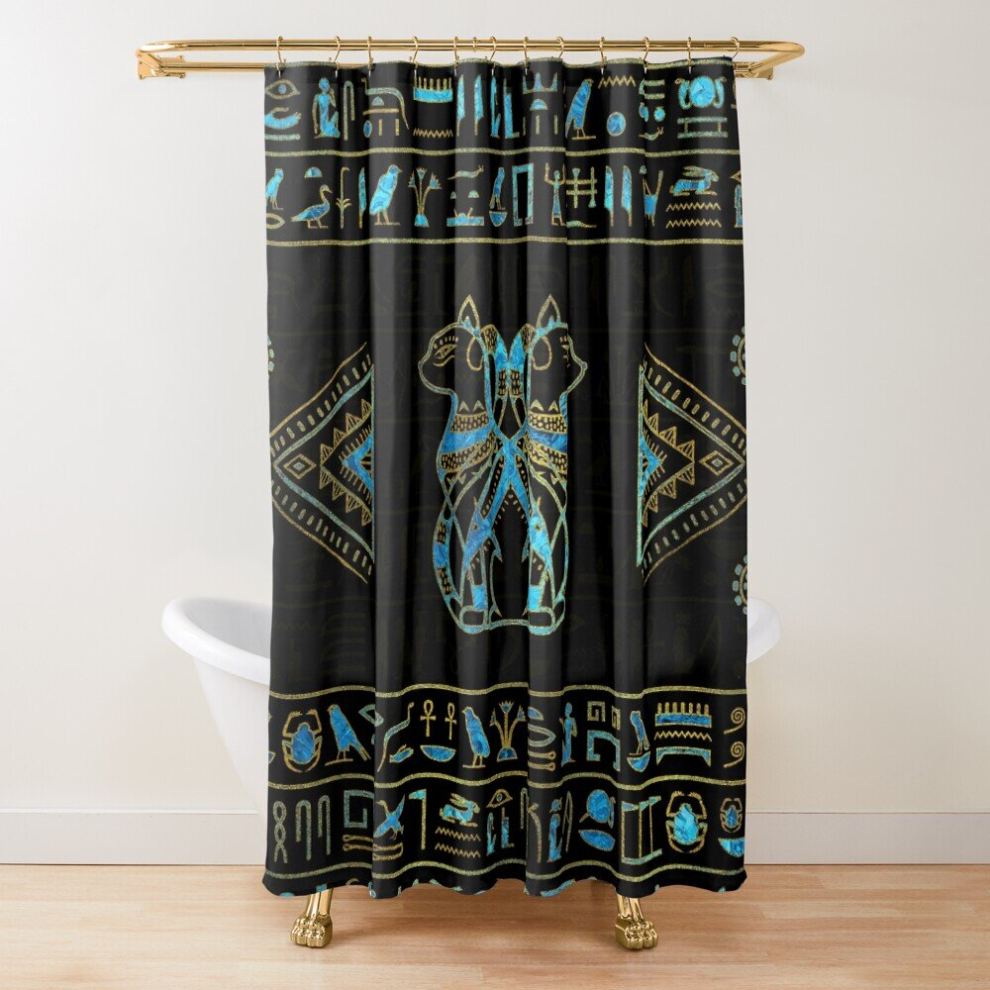 Shower Curtains Egyptian Cats Gold and blue stained glass for Bathroom Decor 72x72 inches