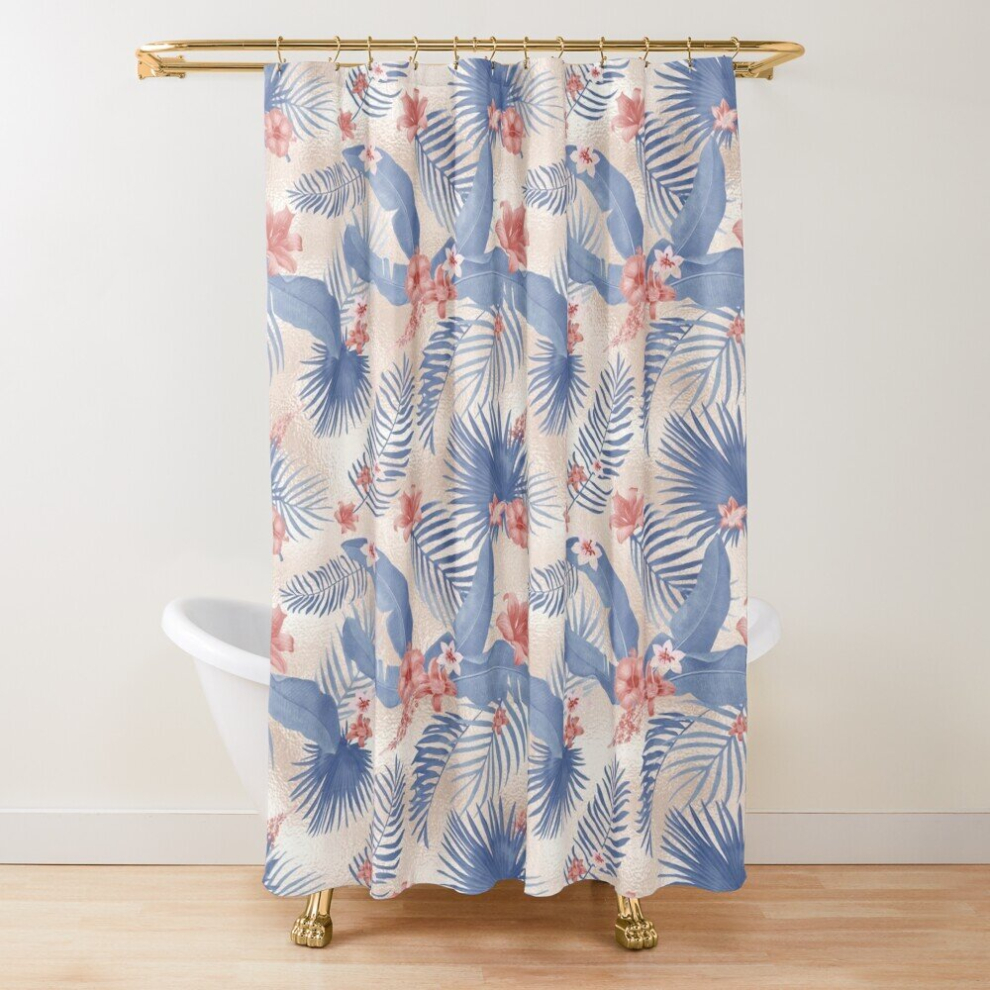 Shower Curtains Palm trees, Palm leaves, Tropical pattern rose gold and blue pattern for Bathroom Decor 72x72 inches