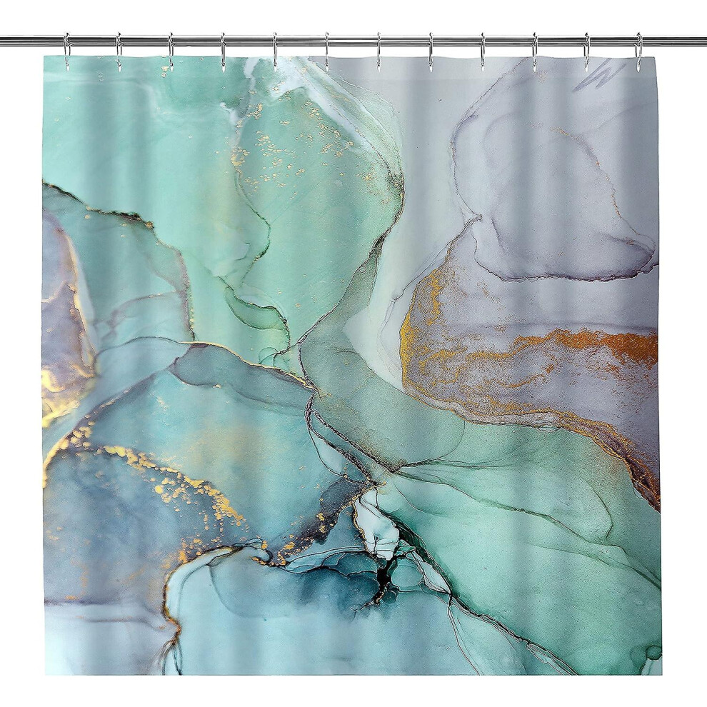ASDCXZ Marble Shower Curtain 180 x 180 cm, Modern Abstract Blue Green Greu White Gold Marble Look Texture Washable Bathroom Shower Curtains Polyester